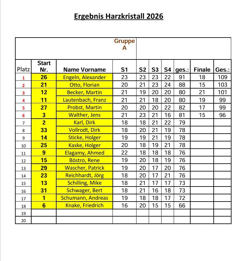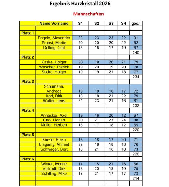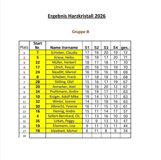 Hier sind die Ergebnisse vom Harzkristall-Cup: